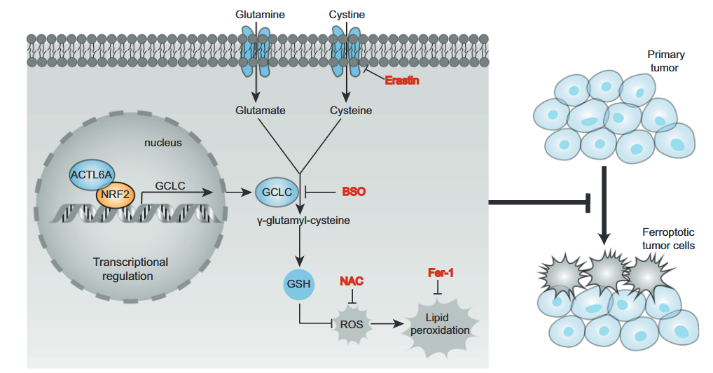 Studies have confirmed that inhibiting ACTL6A or GCLC can induce ferroptosis in gastric cancer cells and significantly inhibit tumor growth.